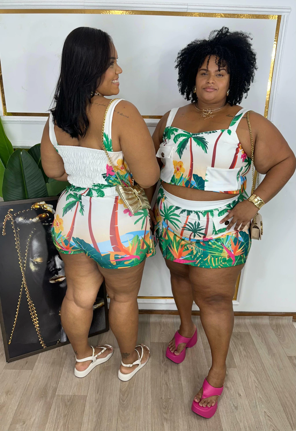 Benefícios: - Tecido moletim com elastano: maciez e elasticidade para o máximo conforto - Design inspirado na Farm: estilo único e atemporal - Peças versáteis: short saia + cropped, para looks cheios de personalidade