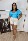 Confeccionado com um tecido leve e de toque suave, o Cropped Beach Gloss tem um acabamento brilhante que adiciona um charme único, ideal para quem deseja um visual moderno e elegante.